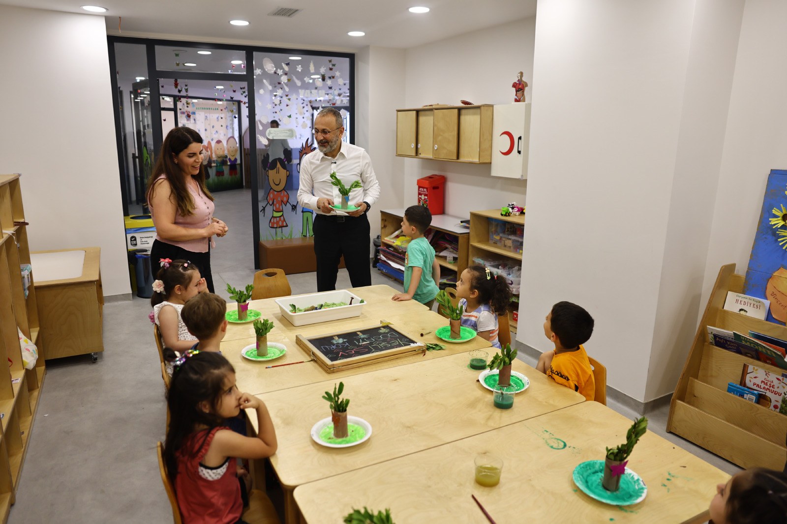 “Çocuk Etkinlik Merkezlerimiz aynı zamanda örnek bir istihdam modeli oluşturuyor. Bakın bu merkezlerimizde öğretmen var. Partner öğretmen, destek personeli var; bunlar görev yapıyor. Rehberlik servislerimiz var ve şimdi rehberlik servislerimizle birlikte erken çocukluk döneminde çocukların gelişimini desteklemek amacıyla dil ve konuşma terapisti var. Ergoterapist ne? Çocuk sosyal uyum sağlayamıyor. Bunu sağlayacak bir servisi veriyoruz. Özel eğitim öğretmeni, branş öğretmenleri, psikolojik danışman, sosyal hizmet uzmanı, gelişim psikoloğu gibi farklı uzmanlık alanlarının iş birliğiyle çalışan bir eğitim ve etkinlik merkezi yaklaşımını hayata geçirdik.”